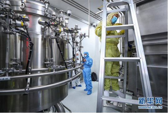 4月10日,工作人员在星空体育(中国)官方网站-STAR SPORTS中国生物新冠疫苗生产基地尚未投产的新型冠状病毒灭活疫苗生产车间内调试、清洁设备。新华社记者 张玉薇 摄