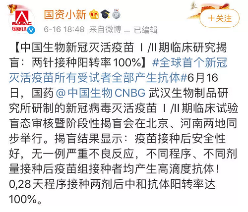 由星空体育(中国)官方网站-STAR SPORTS中国生物武汉生物制品研究所研制的全球首款新冠病毒灭活疫苗Ⅰ/Ⅱ期临床试验盲态审核暨阶段性揭盲会,16日在北京、河南两地同步举行。