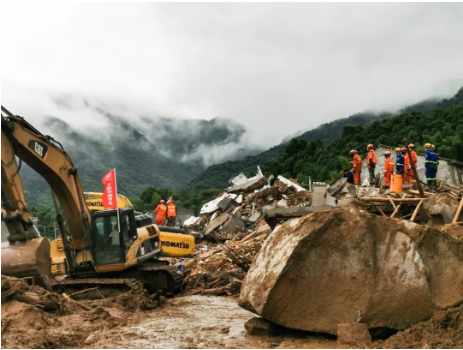 7月7日8时至7月8日8时,湖北省黄冈市黄梅县普降大暴雨,大河镇最大降雨量达353毫米。8日凌晨4时许,大河镇袁山村3组发生山体滑坡,造成5户9人被埋。距离黄梅县大河镇袁山村山体滑坡灾害现场较近的中国中铁中铁四局黄黄铁路(黄冈至黄梅)3标经理部在得知灾情发生后立即组织,第一时间赶赴现场,全力做好救援抢险工作。