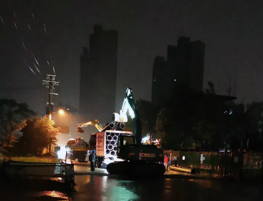 接到消息后,中建五局园林江西景德镇项目积极响应号召,迅速调集抢险人员前往新港大道铁路桥涵下,奋战至夜间8点,低洼路段抢通完毕,滞留车辆顺利通过。